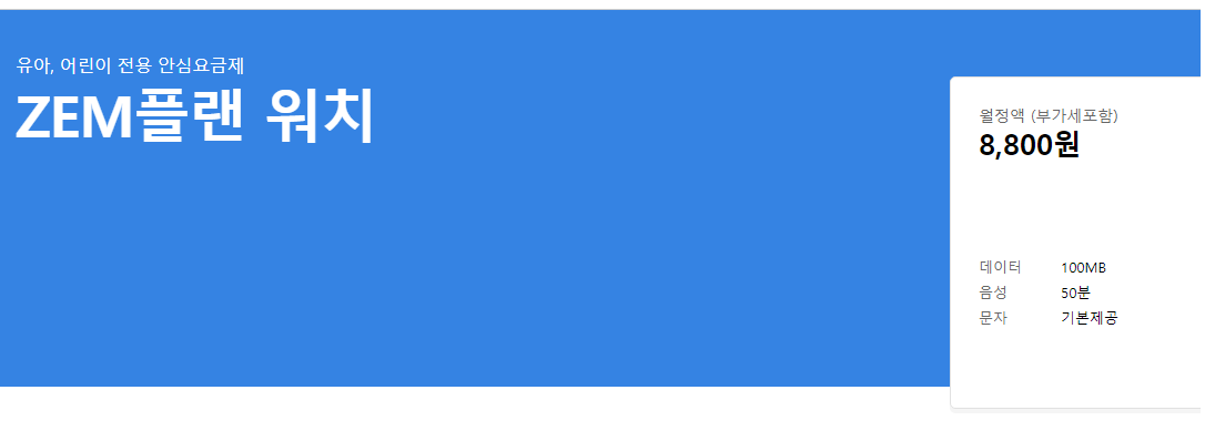 SK T월드 ZEM플랜 워치 요금제는 유아, 어린이 전용 안심요금제입니다.