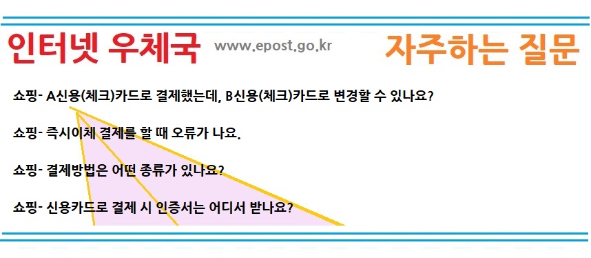 인터넷 우체국 쇼핑- A신용(체크)카드로 결제했는데, B신용(체크)카드로 변경할 수 있는지 알아봅니다.