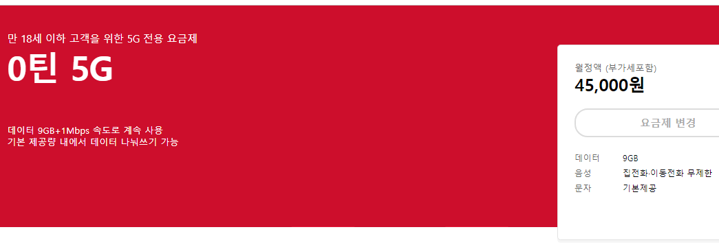 SKT [T월드] 0틴 5G 요금제 가입조건 안내.