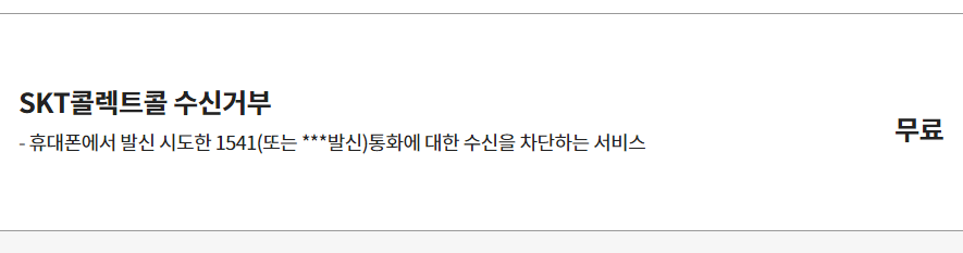 SKT콜렉트콜 수신거부 부가서비스 설명.