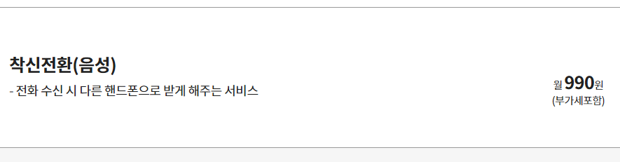 자동연결 + 착신전환일반 함께 가입 시:월정액 2,090원(부가세 포함)