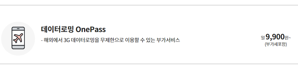 ·로밍 데이터무제한 One Pass 가입 고객이 해외에서 LTE망 이용시, LTE로밍요금 별도 부과될 수 있음 (1패킷당 0.5005원 부과)