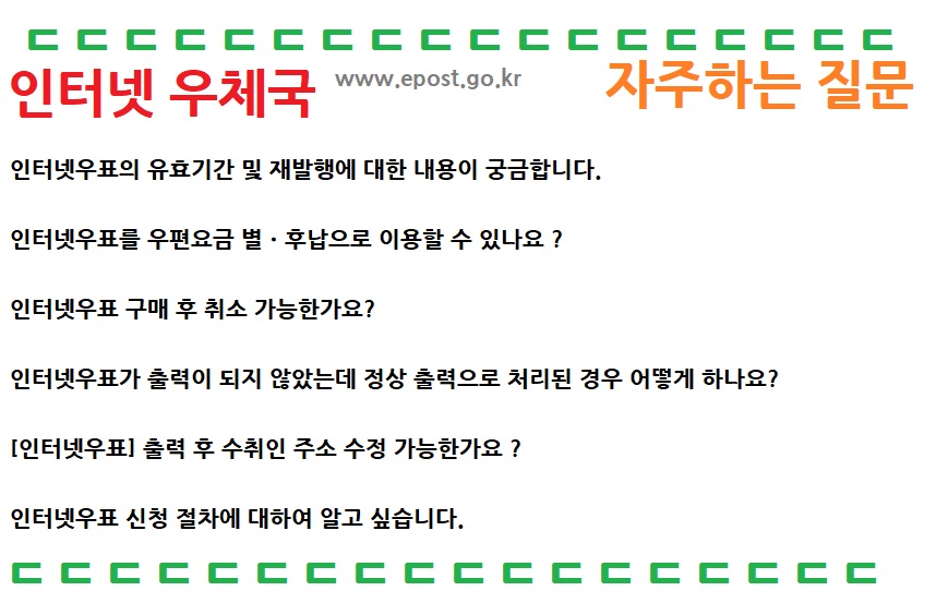 [우체국 -FAQ] 인터넷우표의 유효기간 및 재발행에 대한 내용이 어떠한지 알아보아요.