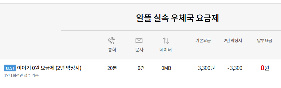 큰사랑 [이야기 알뜰폰 SKT망] 이야기 0원 요금제 배송 안내.
