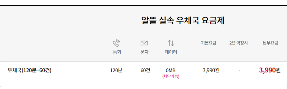 큰사랑 [이야기 알뜰폰 SKT망] 우체국(120분+60건) 요금제 유의사항 안내.