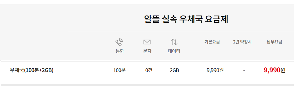큰사랑 [이야기 알뜰폰 SKT망] 우체국(100분2GB) 요금제 가입신청 전 유의사항.