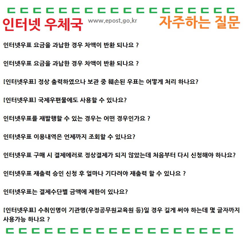 [인터넷 우체국 -자주하는 질문] 인터넷우표 요금을 과납한 경우 차액이 반환 되는지 알아봅니다.